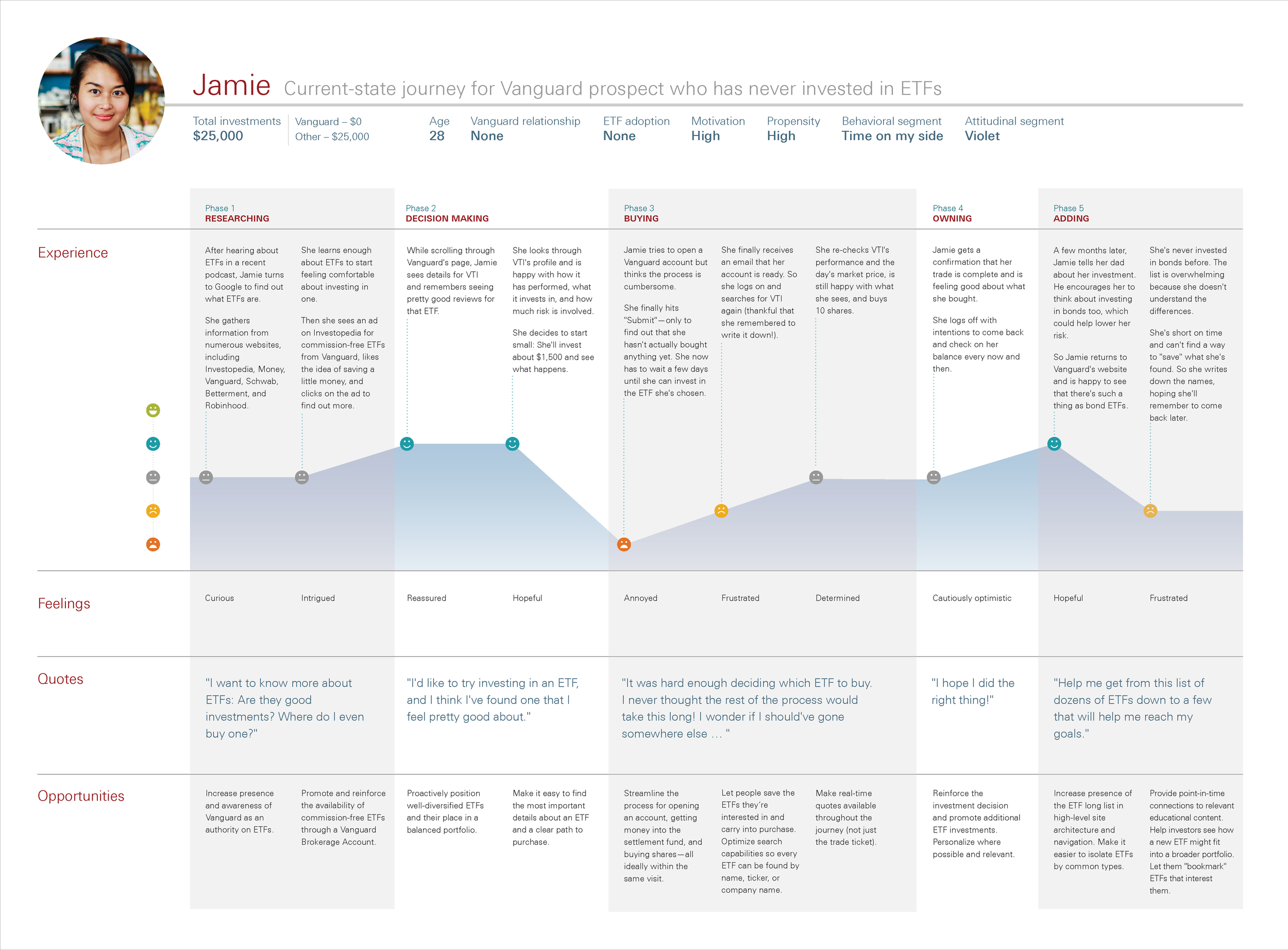 From analyzing usage data and interviewing clients, it was clear that the site had more tools and marketing pages than our clients knew what to do with. Creating our current state journeys helped us focus our budget requests on key areas. High-fidelity wireframes were used to drum up excitement with our business stakeholders and test with clients.